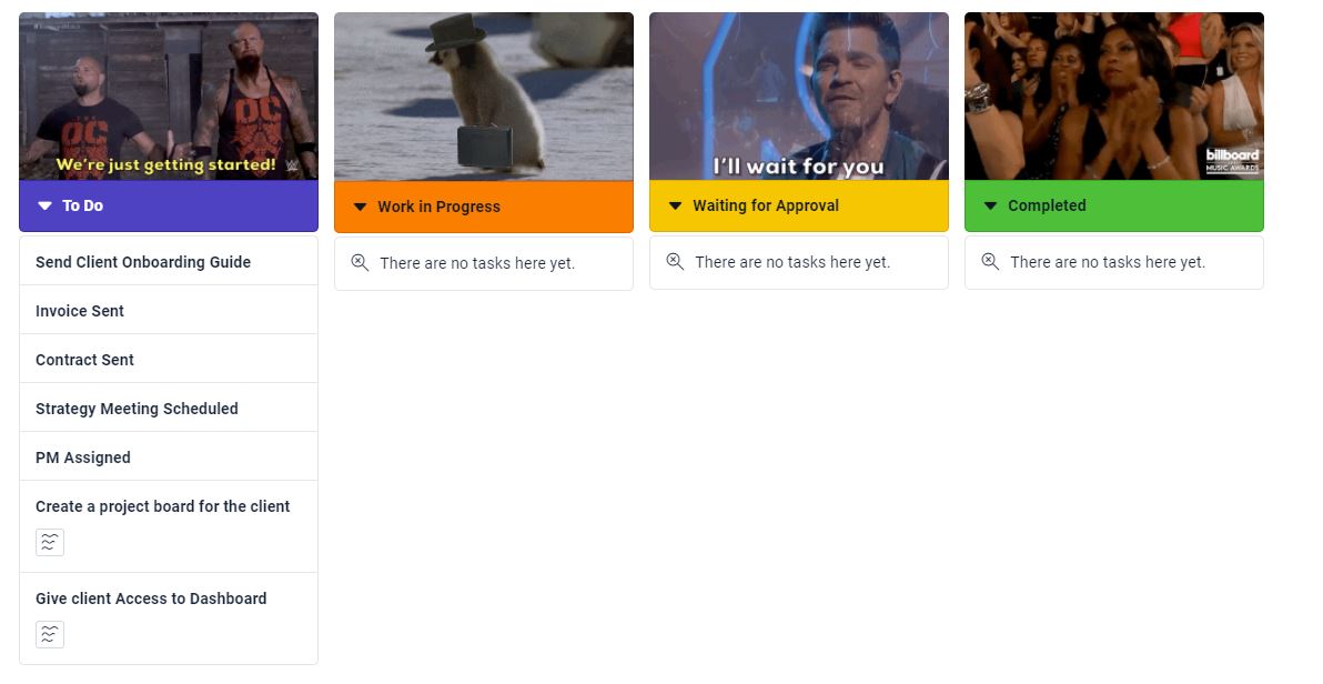 All ongoing tasks and projects can be viewed in your client portal. Within your client dashboard, your account manager will write updates and post deliverables for your review and approval. You will received notifications of messages or if there are certain changes on the status of your project
